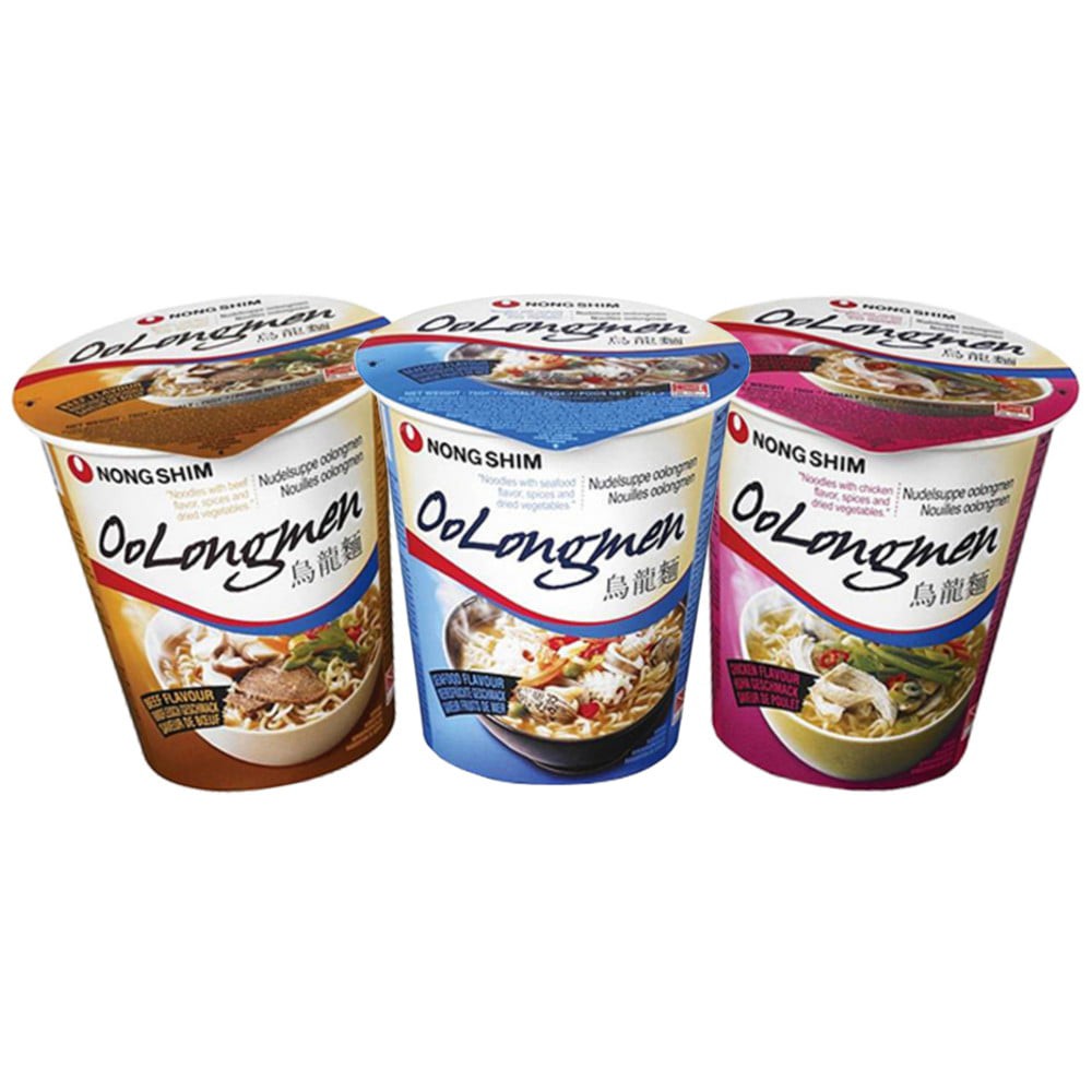 O macarrão Oolongmen possui 3 deliciosos sabores: frutos do mar, carne e galinha. Experimente!