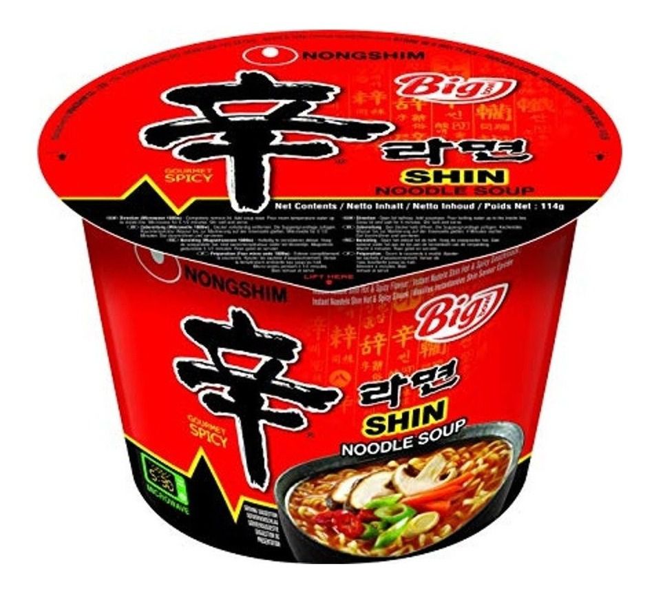Embalagem: Contém um copo grande de macarrão instantâneo Shin Ramyun com 114 gramas.